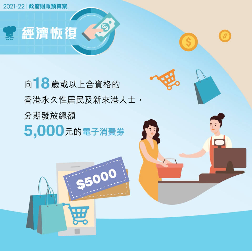 继澳门学习内地经验发消费券后,香港政府 4 月 11 日也首次宣布:全港 18 岁以上市民可领取港币 5000 元 / 人的电子消费券,以此拉动市民消费、帮助中小商户.