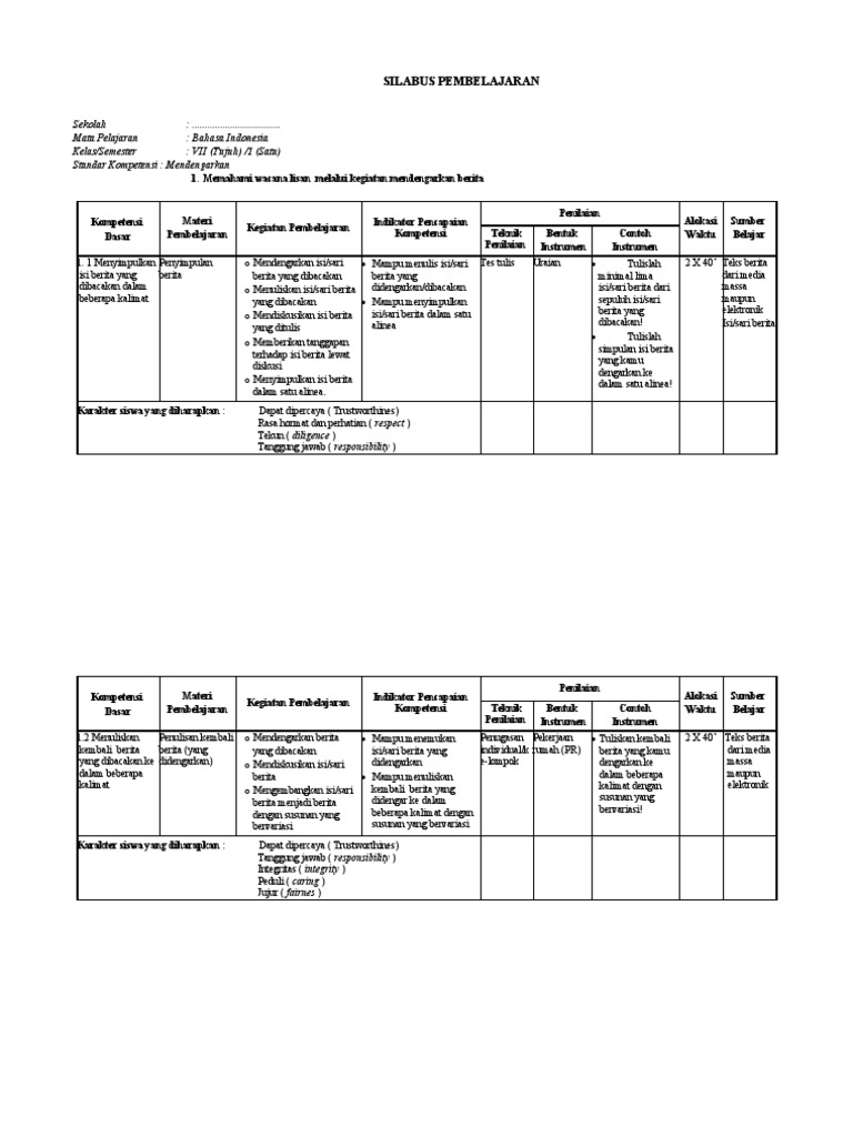 Silabus kurikulum 2013 smk bahasa indonesia. Dari sini saya sarankan untuk anda yang menginginkan file silabus bahasa indonesia kelas 7 smp kurikulum 2013 revisi 2020 maka anda berhak memilikinya dengan gratis baik itu semester 1 dan semester 2. Bagi bapak dan ibu guru yang saat ini mengajar di jenjang smp/mts tepatnya di kelas 7 dan sedang mengajar mata pelajaran bahasa indonesia maka kiranya artikel ini akan dapat bermanfaat bagi anda terutama. Untuk anda dan juga para guru yang saat ini mengajar. Soal bahasa indonesia kelas 4.